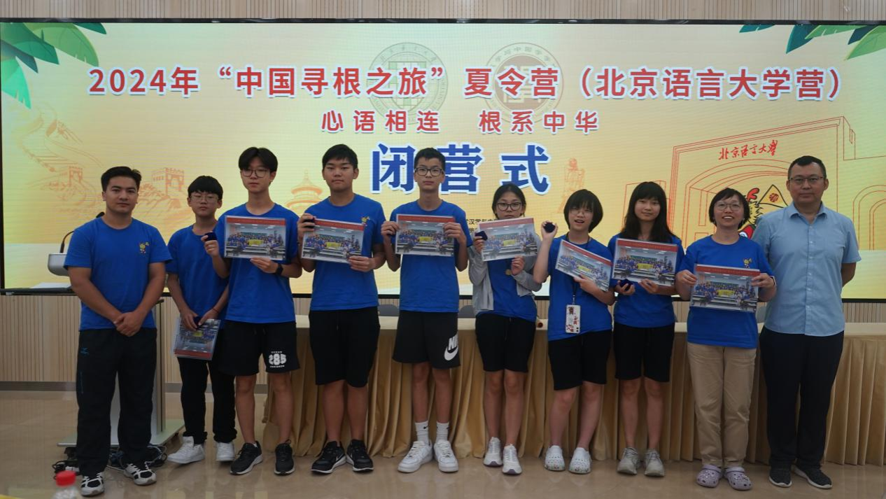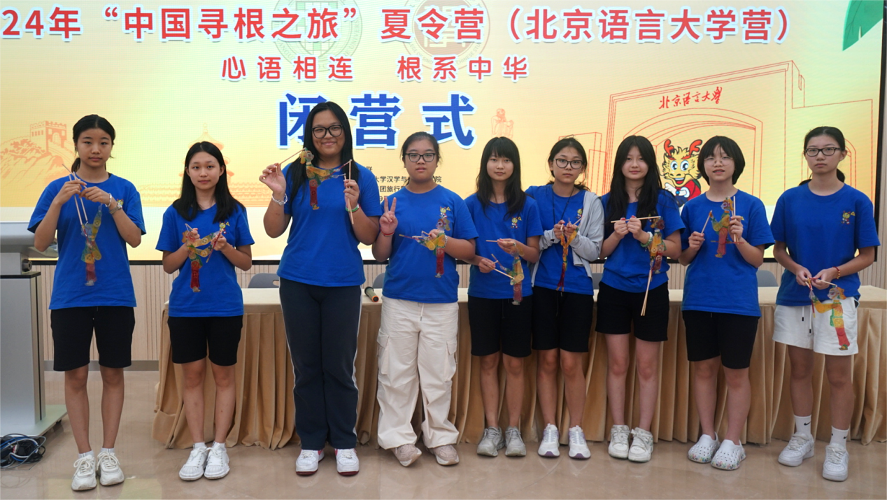 来自意大利、法国、荷兰、泰国等10个国家的38名华裔青少年结束了在北京的寻根之旅,在闭营仪式上,营员们用男生朗诵《将进酒》、书法展示《‘永’字八法》、《皮影中的中国传统节日》、大合唱《但愿人长久》等节目,表达了对中华文化的热爱以及不舍之情。