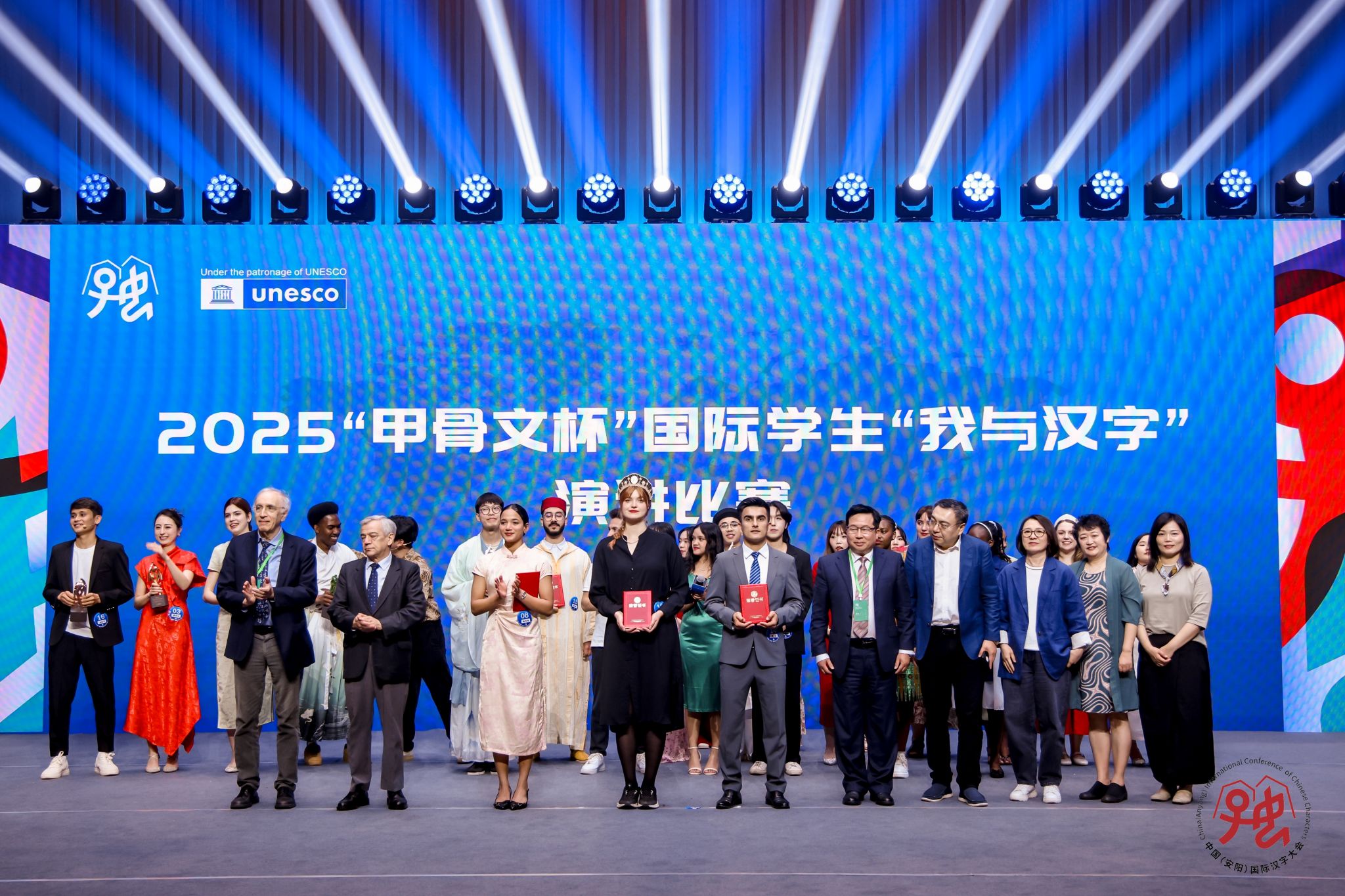 2025年4月21日晚,由河南省人民政府主办、联合国教科文组织、中日韩合作秘书处予以支持的2025中国(安阳)国际汉字大会暨“甲骨文杯”国际学生“我与汉字”演讲大赛总决赛在甲骨文的故乡河南安阳圆满落幕。汉学与中国学学院圭亚那籍学生赵月升凭借其对中国文化深刻的理解和现场出色的表现,获得三等奖和“中外文化交流特别贡献奖”。