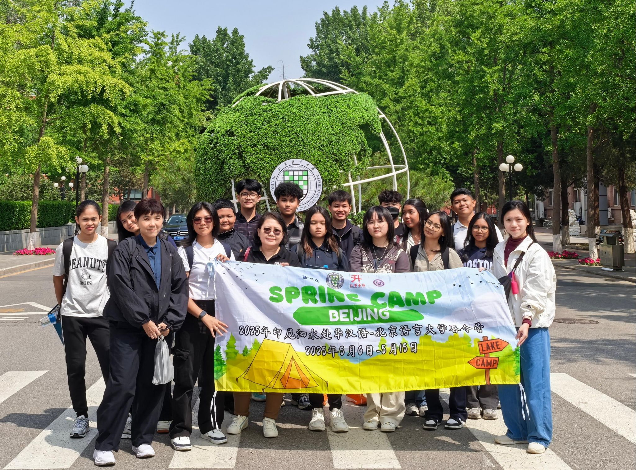仪式结束,春令营领队和学员在教师代表张子怡的带领下参观了北语校园。师生们先后参观了教学楼、食堂、图书馆、体育馆及综合楼,并在综合楼参观了“一带一路”国家交流礼品展,学员们不时驻足拍照、热烈交流,对校园的优美环境与浓厚的学习氛围赞叹不已,也对即将开启的汉语学习与文化体验充满期待。