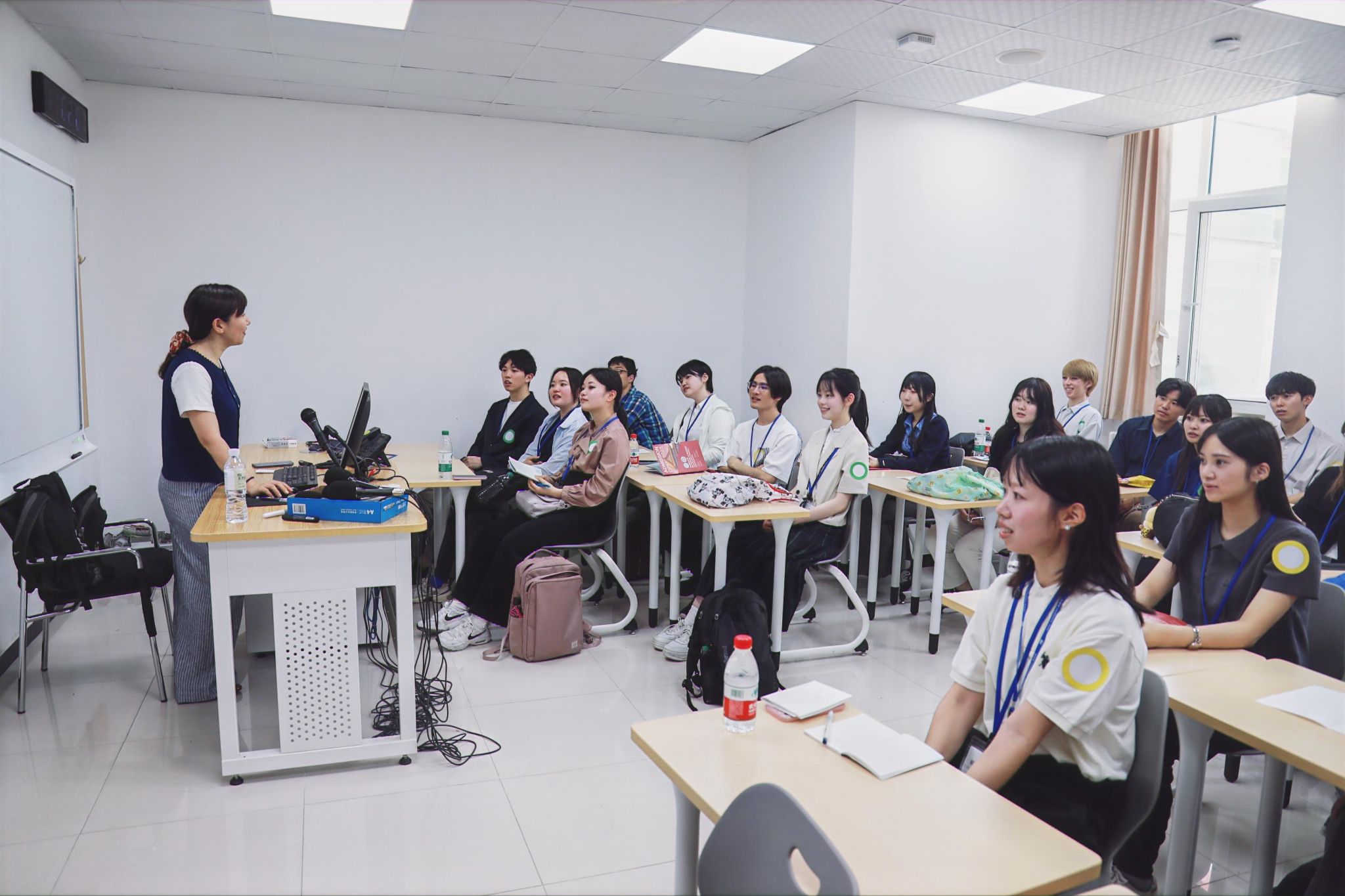 为激发日本青年学习中文、了解中国的兴趣,汉学与中国学学院还为访华团成员精心安排了一堂生动有趣的汉语体验课,汉学与中国学学院的韩阳老师和杨素静老师从中国美食出发,让日本青年在轻松欢快的氛围下快速掌握发音技巧。