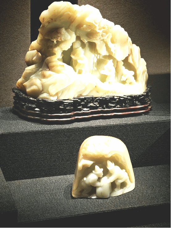 “初进‘玉出昆山’展馆,玉雕的小人在山水之间仿佛在窸窸窣窣地交谈,憨态可掬,”2025级世界汉学与中国学专业硕士生李秋含说,“冬日的干冷萧瑟仿佛也被这些可爱的玉雕滋润了,让人们在想象中渐渐接近那个时空都相对遥远的‘昆山’······置身于这个明与暗、动与静相对比的展馆中,我对故宫的理解仿佛又多了一个层次。”