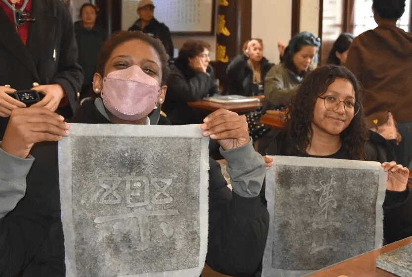 泰山拓片作为一项重要的非物质文化遗产,承载着泰山深厚的历史文化底蕴。它不仅是传统技艺的体现,也是文化传播的重要载体。在岱庙“信道堂”中,通过老师的讲解、技艺演示、实操制作,同学们不仅学习了泰山拓片的历史渊源与文化关联,更有机会亲手感受传统非遗技艺的趣味。当欣喜地展示着自己完成的拓片作品时,同学们才真正从这样一次“以技载文、以文传情”的文化体验,更加深刻地领略到传统手工艺的无穷匠心。