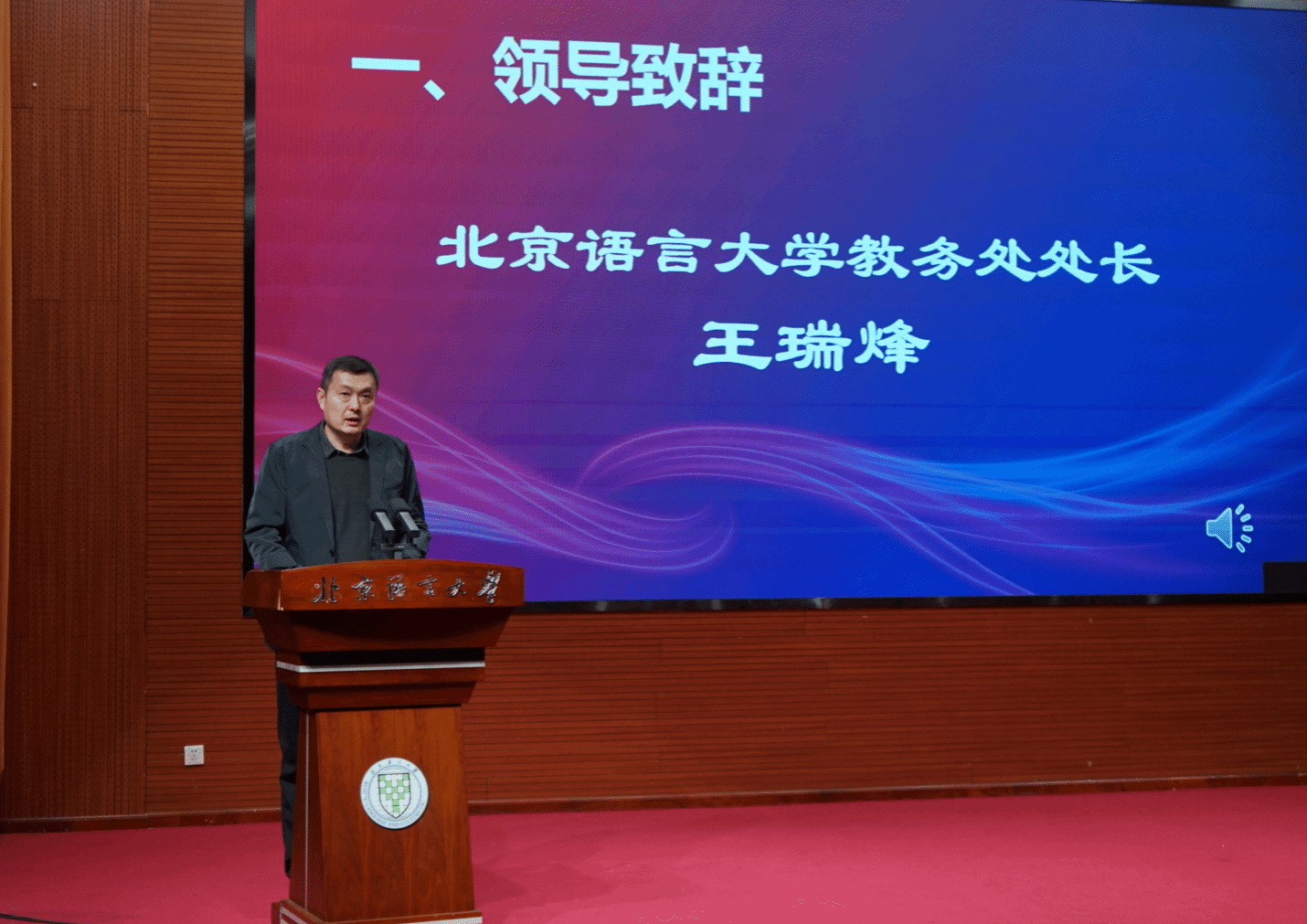 教务处处长王瑞烽在致辞中高度肯定了实验班的育人理念及丰硕实践成果,他提到,习近平总书记在复信青年汉学家时深刻指出,“汉学源自中国、属于世界,是全人类共同的精神财富。希望你们继续与汉学结伴、和中国同行,加强研究阐释,向世界介绍真实、立体、全面的中国。”他认为,总书记的回信为我们的人才培养工作提供了根本遵循,未来,希望实验班全体师生:第一,坚守初心、乘势而上,在学术研究和实践调研等方面继续保持这份钻研的精神和实践热情,不断积累学术成果,提升综合能力;第二,充分发挥实验班的教学实践牵引作用,有效凝聚学科发展力量,不断完善汉学与中国学的学科体系、学术体系、话语体系,为学校学科建设高质量发展奠定坚实的基础,为全球汉学研究贡献更多的技术成果;第三,勇担使命,当好文明使者,老师们继续深耕教学科研一线,以高水平的学术素养和育人情怀,引领学生成长成才,更希望同学们把在实验班的学习收获、转化成传播中国声音、促进文明互鉴的实际行动,未来能够在国际舞台上充分展现真实、立体、全面的中国形象,推动不同文明相知相亲、互学互鉴,为构建人类命运共同体贡献青春力量。