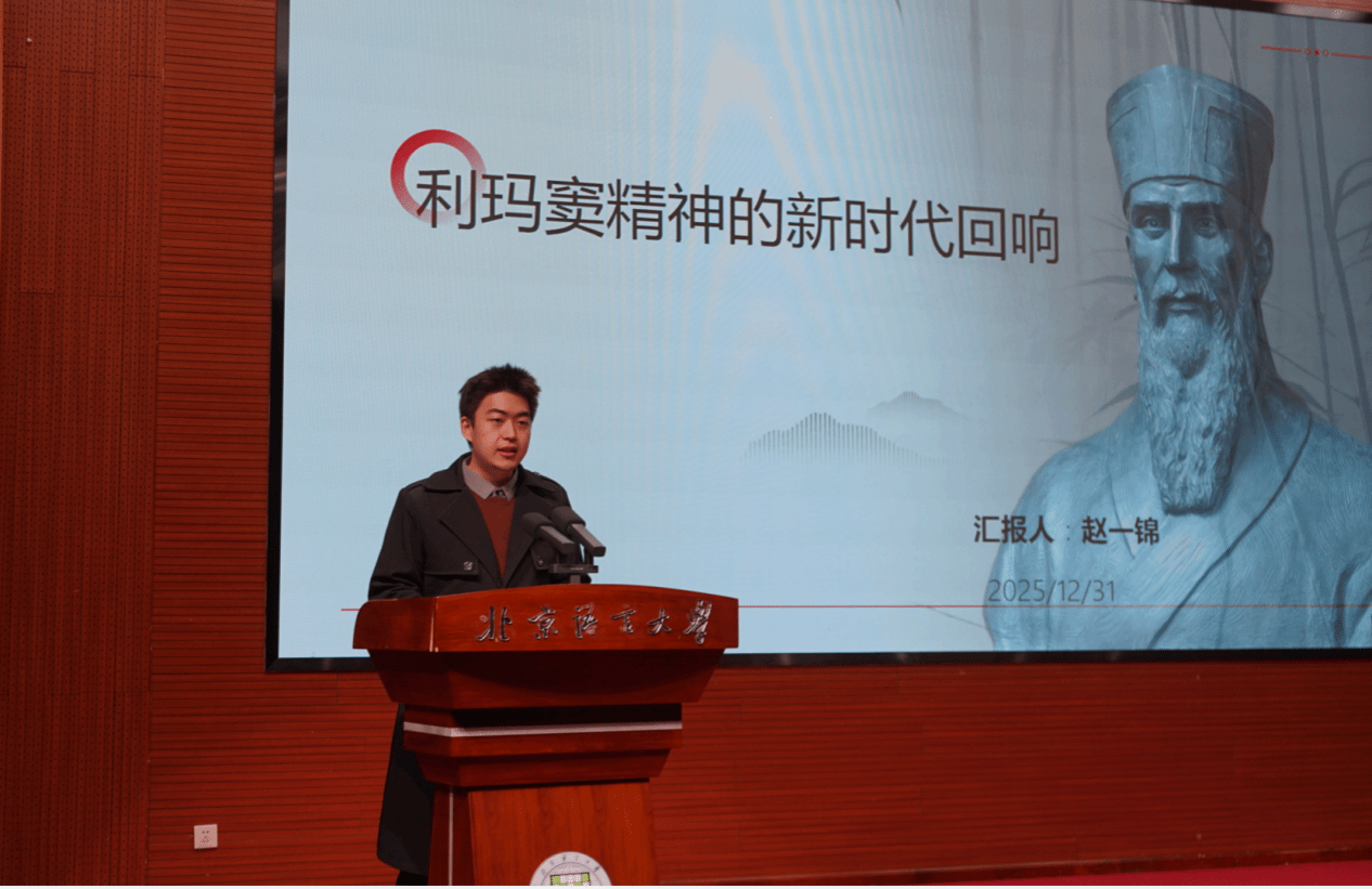 赵一锦同学在汇报中强调利玛窦精神的当代转化与青年使命,应立志做跨文化“深度阐释者”与“意义共创者”,以语言为桥、文化为媒,推动文明互鉴与青年交流,助力人类命运共同体构建,向世界展示真实、立体、全面的中国。